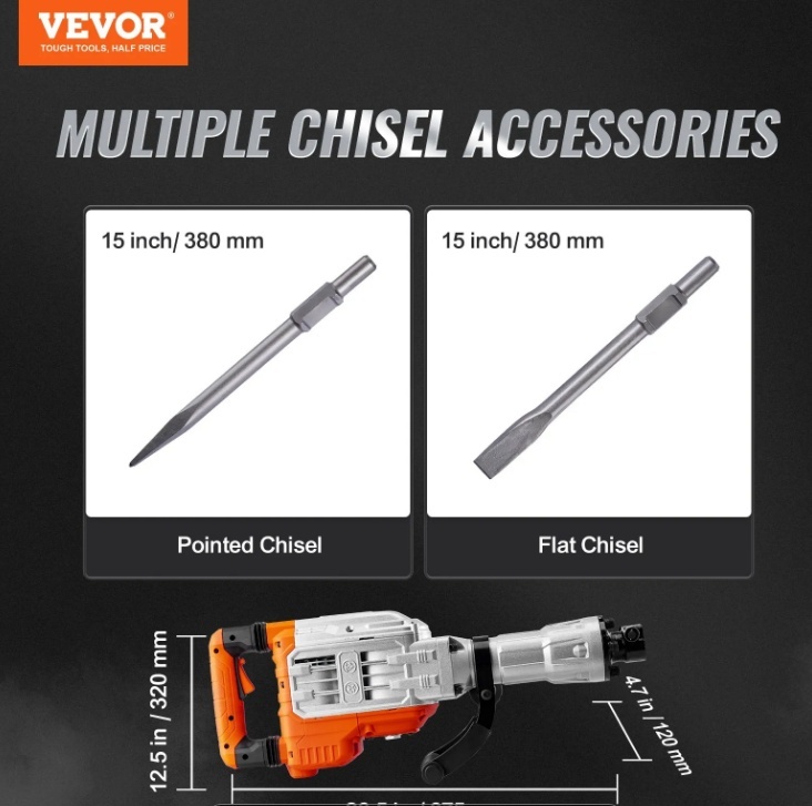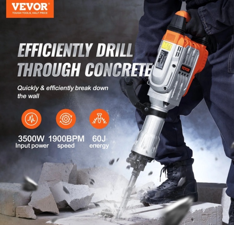 VEVOR triecienāmurs ar betona lauzni , 3500 W + 2 kalti