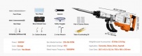 Plašs pielietojuma klāsts: 110 V jaudas demontāžas urbjmašīnām un āmuriem ir 2 kalta uzgaļi (plakanais kalts un smailais kalts). Tas ir lieliski piemērots demontāžai, tranšeju rakšanai, šķelšanai un caurumu veidošanai betonā, blokos, ķieģeļos un flīzēs. Tas ir ideāli piemērots arī dažādiem pielietojumiem, piemēram, cauruļvadiem, mehāniskai uzstādīšanai, drenāžas iekārtu būvniecībai, māju pamatu noņemšanai, betona plātnēm, eļļas skursteņiem, iekšējai apdarei un daudz kam citam!
