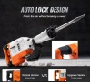 Izstrādāts, lai sniegtu vairāk nekā tikai priekšrocības: Uzlabotā triecienu absorbējošā struktūra ar dubultām atsperēm var ietaupīt vairāk pūļu. 360° rotējošais rokturis samazina nogurumu ilgstoša darba laikā. Tas nodrošina precizitāti un precizitāti dažās relatīvi šaurās vietās. Demontāžas āmurs ir aprīkots arī ar koferi ērtai pārnēsāšanai. Bloķēšanas poga var automātiski uzturēt darbību, ietaupot pūles.