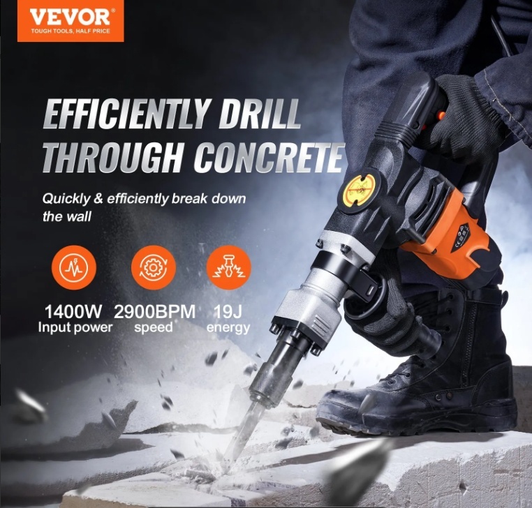 VEVOR triecienāmurs ar betona lauzni, 1600 W + 2 kalti