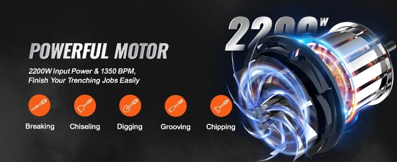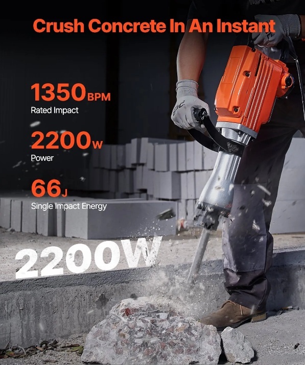 VEVOR triecienāmurs ar betona lauzni , 2200 W + 2 kalti
