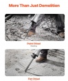 Izcila veiktspēja un augstākā kvalitāte: 2000 W rūpnieciskais motors ar 66 J trieciena enerģiju ir paredzēts betona un metālapstrādes projektu ātrai un precīzai pabeigšanai. Tas ir paredzēts profesionāļiem. Šis elektriskais domkrats-āmurs ir izgatavots no izturīgas alumīnija konstrukcijas, ir ļoti izturīgs un izturīgs pret koroziju ilgstošai lietošanai.