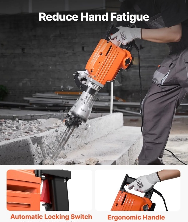 Izcila veiktspēja un augstākā kvalitāte: 2200 W rūpnieciskais motors ar 66 J trieciena enerģiju ir paredzēts, lai ātri un precīzi paveiktu betona un metālapstrādes projektus. Tas ir paredzēts profesionāļiem. Šis elektriskais domkrats-āmurs ir izgatavots no izturīgas alumīnija konstrukcijas, ir ļoti izturīgs un izturīgs pret koroziju ilgstošai lietošanai.