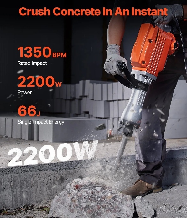 VEVOR triecienāmurs ar betona lauzni , 2200 W + 6 kalti