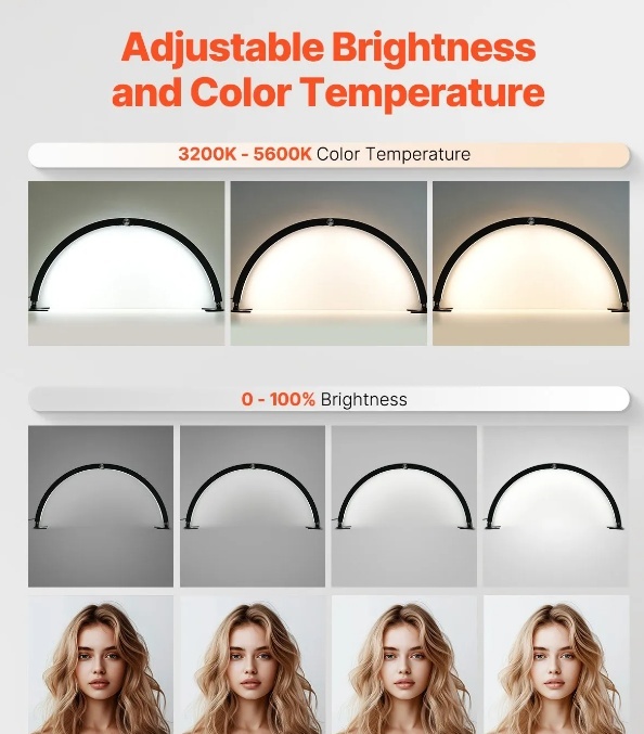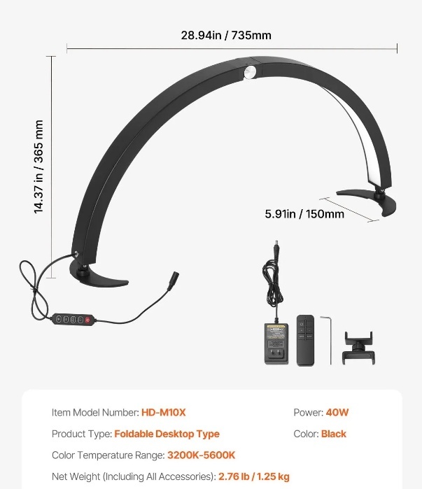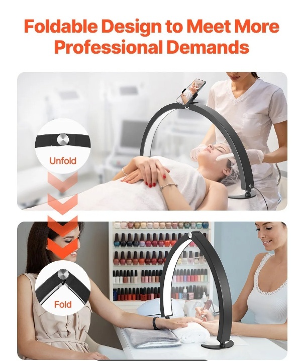 Stabils un izturīgs: Pusmēness lampas statīvs ir izgatavots no augstas kvalitātes alumīnija sakausējuma, padarot to vieglu un viegli pārvietojamu. Tā ir izstrādāta, lai izturētu skarbus apstākļus, ir izturīga pret skrāpējumiem, iespiedumiem un citiem nodiluma veidiem.