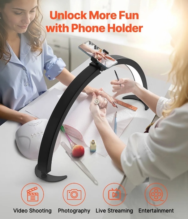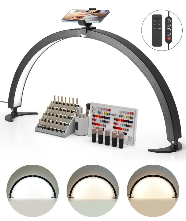 Manikīra galda lampa , 40 W , pusmēness formas galda lampa ar telefona turētāju , regulējams spilgtums