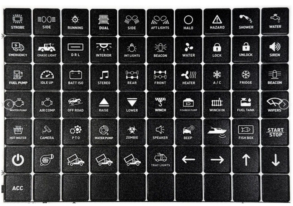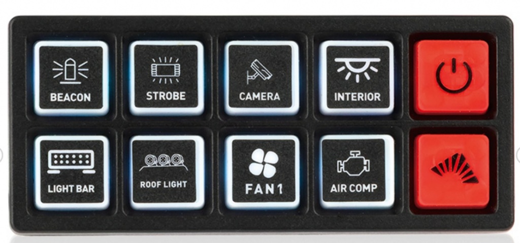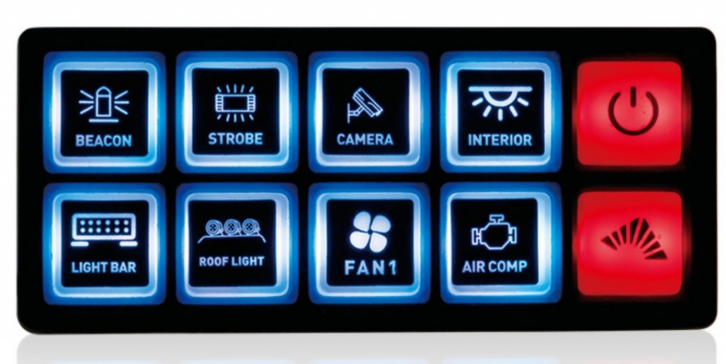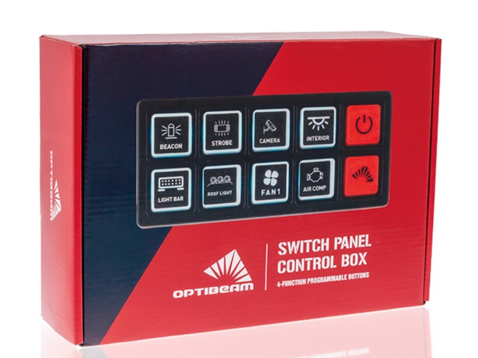 Informācija: Optibeam vadības panelis ir paredzēts, lai paātrinātu un atvieglotu papildu ierīču uzstādīšanu un vadību dažādās 12 V darbības vidēs ar kopējo jaudu līdz 60 ampēriem. Vairs nav jāuzstāda atsevišķi ierīcēm specifiski drošinātāji, releji vai slēdži, bet izmantotās funkcijas tiek tieši savienotas ar 8 kanālu vadības bloku, no kurienes tās tiek darbinātas ar savu 8 pogu vadības slēdzi.