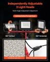 Daudzleņķa neatkarīgs apgaismojums: Katrai noņemamai galvai ir individuāli slēdži un virziena regulēšana, kas ļauj pārnēsājamo darba lampu piestiprināt pie sienas vai izmantot uz galda, nodrošinot elastīgu apgaismojumu āra remonta darbos vai strāvas padeves pārtraukumu gadījumā.