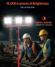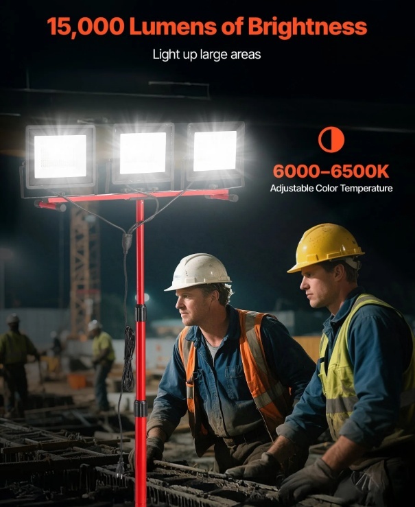 Mūsu LED darba lampa ar statīvu atbalsta pārslēgšanos no 6000K silti baltas uz 6500K vēsi baltu krāsu, un tās spilgtums ir regulējams līdz 15 000 lūmeniem. Tas palīdz apmierināt dažādas vajadzības, piemēram, darbu naktī, pagalma apgaismojumu vai komfortablas vides radīšanu.