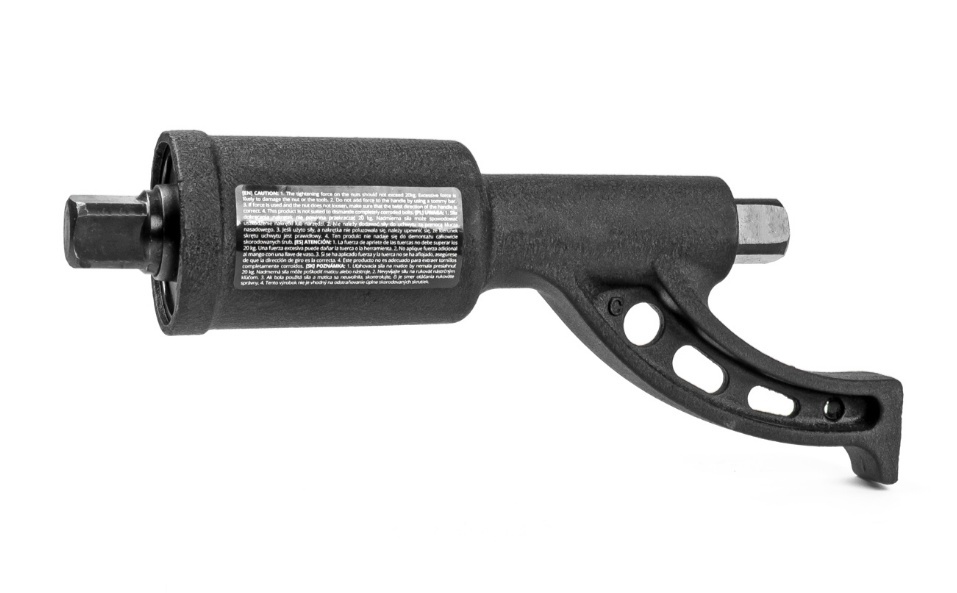 Kad riteņu skrūves ir atskrūvētas ar planetāro atslēgu un automašīna ir pacelta ar domkratu, vienkārši pievienojiet kloķvārpstu komplektā iekļautajam pagarinātājam un uzmavai, un jūs varēsiet ātrāk noņemt atskrūvētos uzgriežņus/tapas — tādējādi panākot 1:1 konfigurāciju.