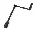 Uzlieciet kloķvārpstu un uzmavu un uzlieciet uzgriežņu atslēgu uz riteņa. Nofiksējiet fiksācijas kurpi pret tuvāko blakus esošo skrūvi — rīkojieties pulksteņrādītāja virzienā. Pēc tam atskrūvējiet, izmantojot kloķvārpstu.