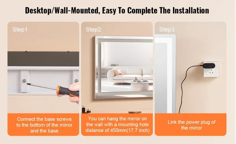Pie sienas stiprināms un galda stiprinājums: Mēs atbalstām divu veidu montāžas metodes, neatkarīgi no tā, vai tas tiek uzstādīts uz guļamistabas tualetes galdiņa spoguļa virsmas vai dušas kabīnes sienas, lai atbilstu jūsu vajadzībām.