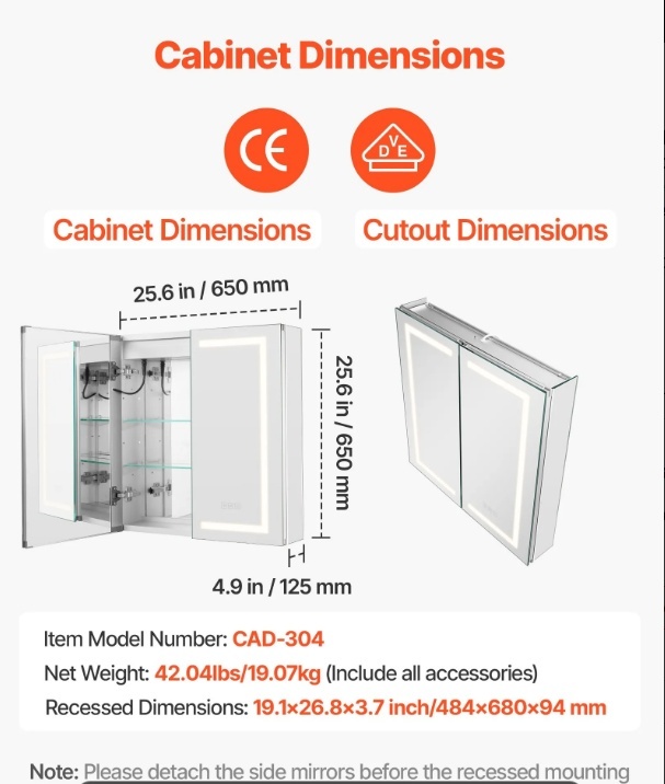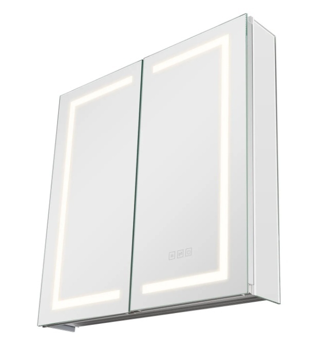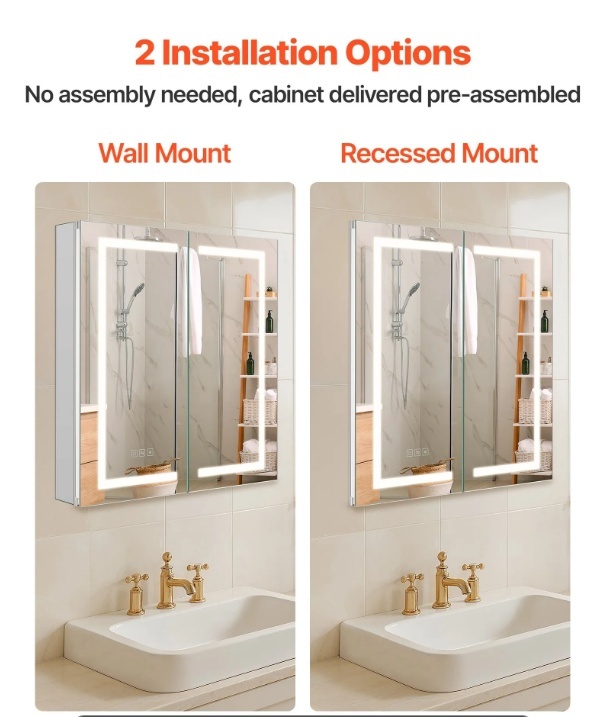 VEVOR apgaismots medicīnas skapītis ar spoguli , 65 x 65 cm , iebūvējams vai sienas stiprinājums, 3 krāsu LED ar regulējamu apgaismojumu