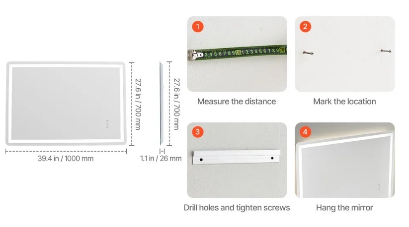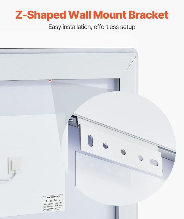 Vienkārša uzstādīšana: Piestipriniet Z formas sienas kronšteinu pie sienas un pēc tam vertikāli pakariniet LED apgaismoto vannas istabas spoguli uz kronšteina. Uzstādīšana ir ātra un vienkārša, bez sarežģītām darbībām — vienkārši pievienojiet to kontaktligzdai, un viss ir gatavs lietošanai.