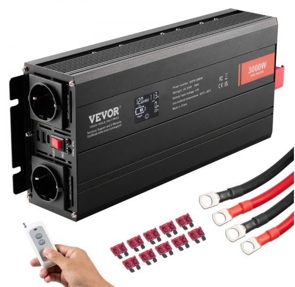 VEVOR tīrā sinusoidālā viļņa strāvas pārveidotājs 3000 W DC12V uz AC230V LCD , tālvadības pults , CE