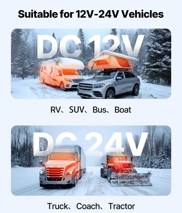Šis dīzeļdegvielas sildītājs, kas paredzēts darbam ar 12–24 V barošanas avotu, ir piemērots plašam transportlīdzekļu klāstam, tostarp vieglajām automašīnām, kravas automašīnām, laivām, ekskavatoriem un citiem. Atvadieties no saltajiem ziemas rītiem un saglabājiet siltumu neatkarīgi no tā, kur atrodaties.