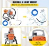 Šļūtene ir izturīga, bet elastīga, tāpēc tā viegli pārvietojas. Sūknis ir jaudīgs un izturīgs, un ar to var pabeigt vairākus projektus. Šļūtene un sūknis kopā nodrošina smidzinātāja darbību vienmērīgu.