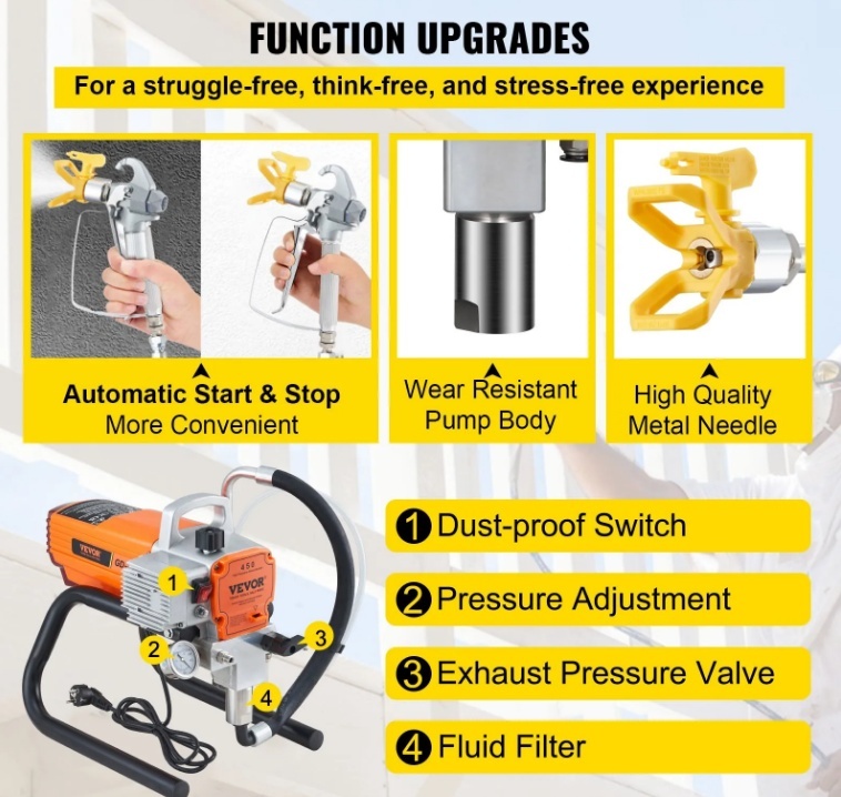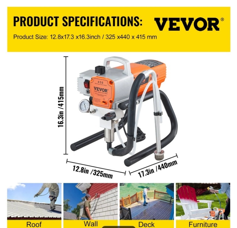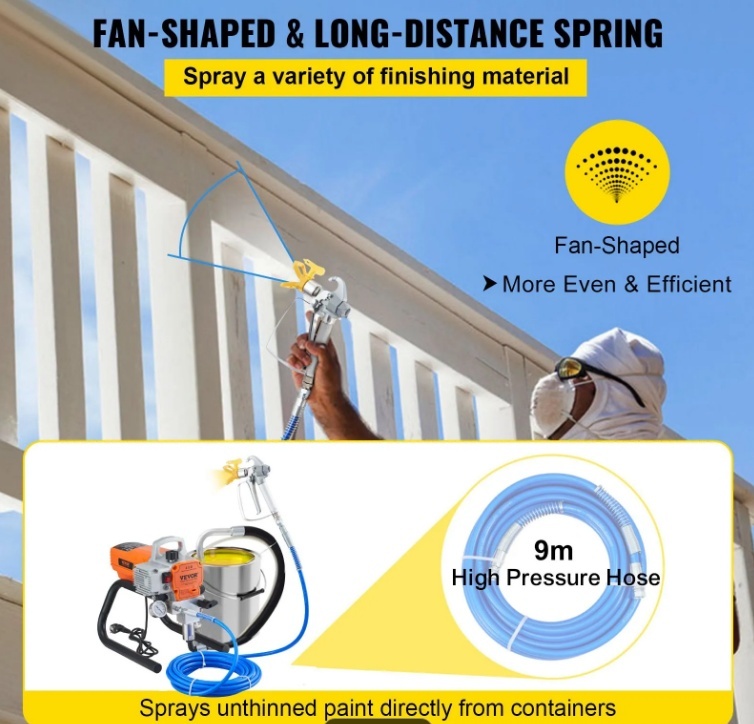 VEVOR bezgaisa krāsas smidzinātājs: ātra un vienmērīga krāsošana