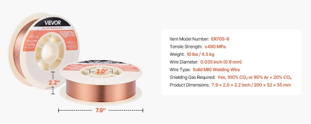 Augstas kvalitātes un uzticamas metināšanas šuves: VEVOR 0,9mm ER70S-6 cietā MIG metināšanas stieple satur augstāku mangāna un silīcija deoksidantu līmeni, nodrošinot spēcīgu un vienmērīgu metināšanu uz mīkstā oglekļa tērauda — pat strādājot ar eļļainu vai viegli sarūsējušu tēraudu.