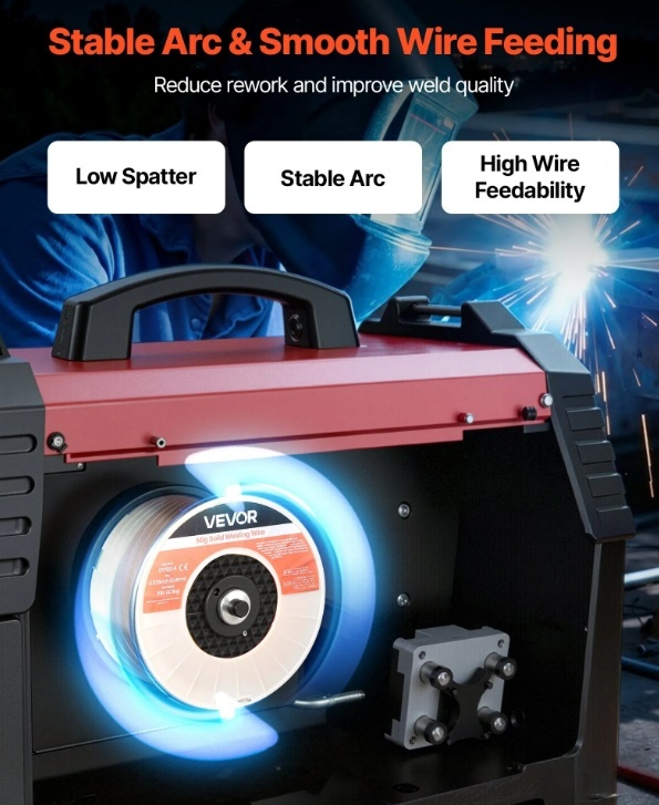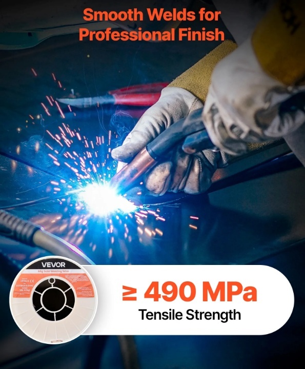 VEVOR 0,9mm ER70S-6 cietā MIG metināšanas stieple nodrošina spēcīgu, vienmērīgu metināšanu ar vienmērīgu stieples padevi, zemu šļakatu daudzumu un stabilu loka darbību. Atbalsta metināšanu visās pozīcijās un augstu stiepes izturību uzticamai veiktspējai automobiļu, mašīnbūves un "dari pats" metināšanas projektos.