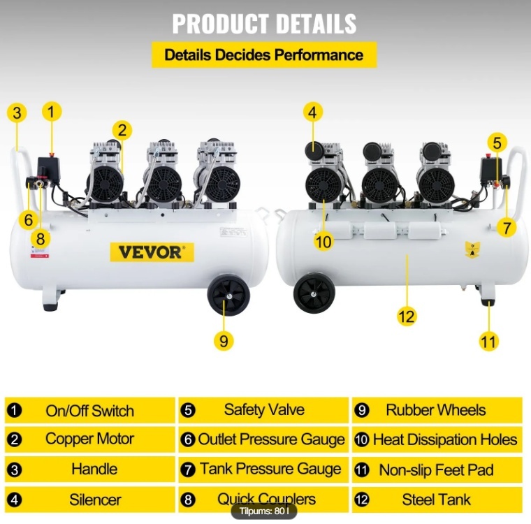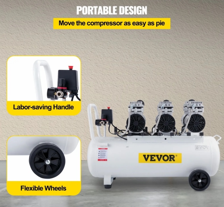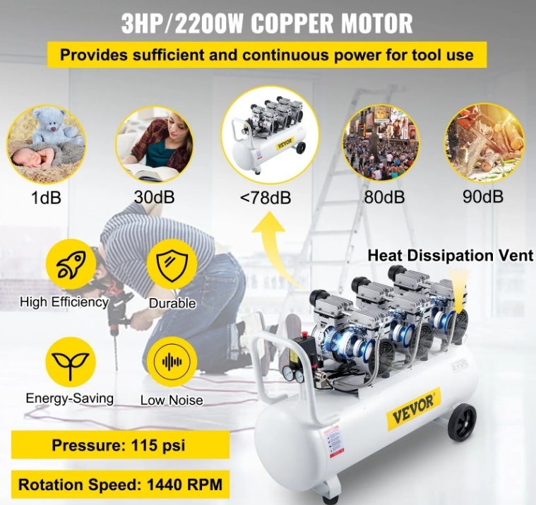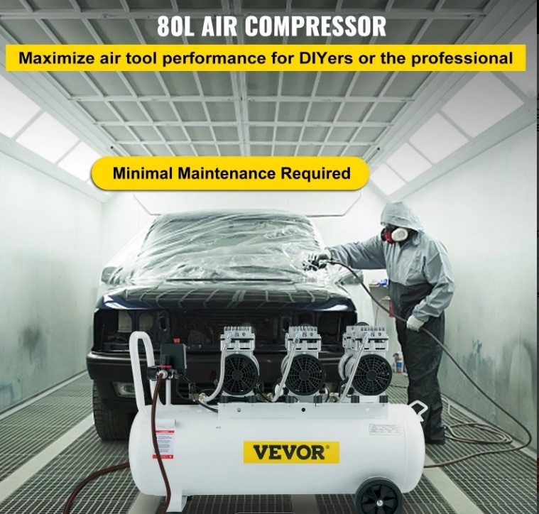 VEVOR īpaši kluss bez eļļas gaisa kompresors 80 litru