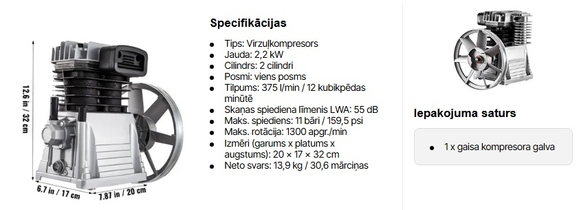 2,2 kW gaisa kompresora galvas