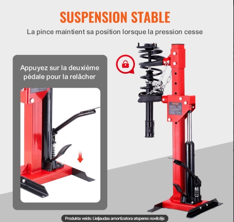 VEVOR statnes atsperu saspiešanas mehānisms izmanto hidraulisko domkratu. Tā celtspēja ir 4,5 tonnas, kas padara to izturīgu un uzticamu. Šī hidrauliskā jauda nodrošina vienmērīgu darbību. Jūs varat viegli tikt galā ar stingrām un smagām atsperēm. Instrumenta veiktspēja ir augstākā līmeņa, ietaupot jūsu laiku un pūles. Šis instruments ir ideāli piemērots daudziem transportlīdzekļiem, piemēram, vieglajām un kravas automašīnām. Tā lielā celtspēja ļauj veikt lielāko daļu atsperu montāžas darbu jebkurā garāžā vai darbnīcā. Izmantojiet šo instrumentu, lai izbaudītu hidrauliskās jaudas efektivitāti un spēku.