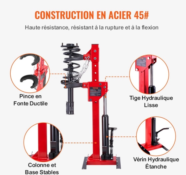 Šis statņu atsperu saspiešanas instruments ir būtisks papildinājums jūsu instrumentu komplektam. Sarežģītos darbos šis VEVOR statņu atsperu saspiešanas instruments padara atsperu nomaiņu vienkāršu un drošu. Instruments nodrošina drošību, droši noturot atsperi. Tas padara procesu vienmērīgu un bez riska. Tas ir ideāli piemērots gan neregulārai lietošanai mājās, gan profesionāliem darbiem. Tā spēcīgā konstrukcija un saspiešanas spēks padara to uzticamu. Šis instruments ir obligāts ikvienam, kas nodarbojas ar atsperu maiņu. Jūs varat viegli veikt atsperu nomaiņu, pateicoties tā lietošanas vienkāršībai un drošības funkcijām.