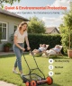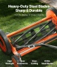 Vides aizsardzība un klusa darbība: Nav nepieciešamas baterijas, elektrība vai degviela. Šis zāles pļāvējs ar ruļļiem nerada izmešus un ir kluss. Tas ir ideāli piemērots ģimenēm ar bērniem vai mājdzīvniekiem, vienlaikus rūpējoties par kaimiņiem. Izbaudiet mierīgu un zaļu dārzkopību.