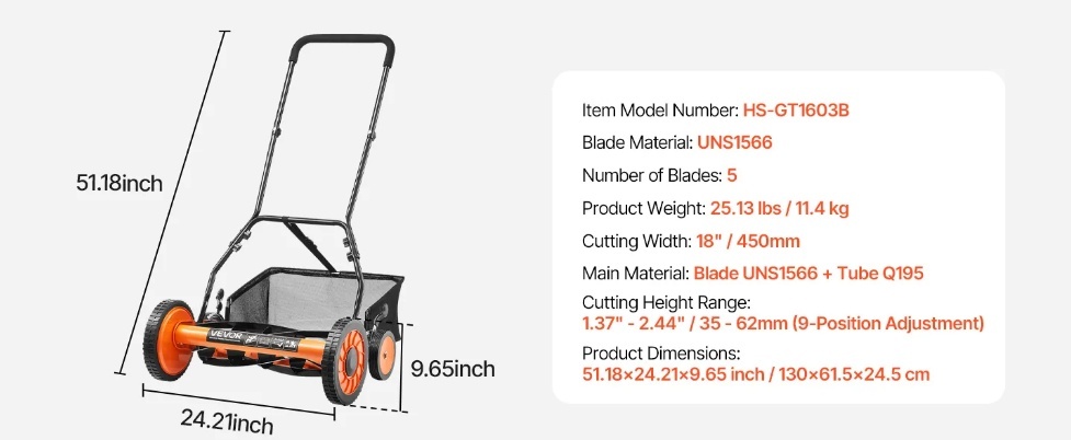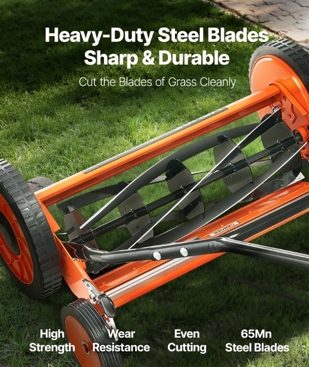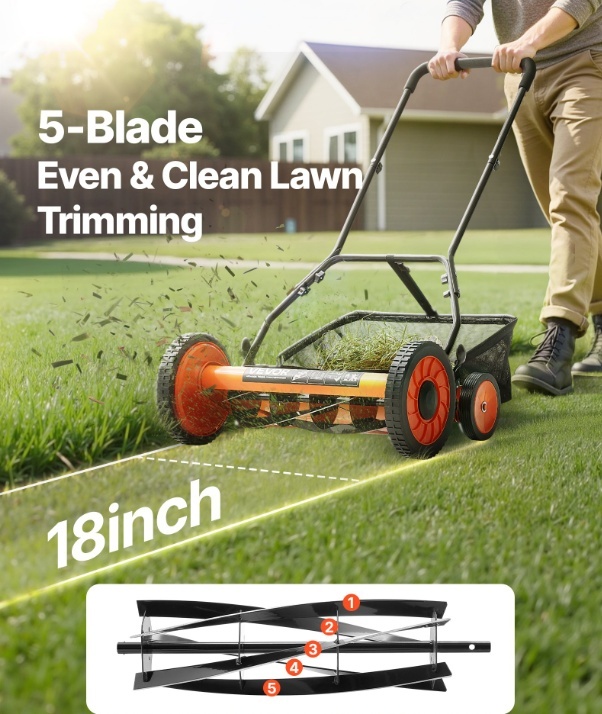 VEVOR stumjamais zāles pļāvējs ar ruļļiem , 45 cm , 5 asmeņi