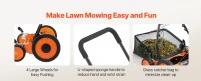 Samazināta fiziskā slodze: Ar 4 lieliem riteņiem un polsterētu, ergonomisku U formas rokturi, šis zāles pļāvējs ar ejamo funkciju atvieglo pļaušanu, samazinot slodzi, īpaši senioriem. Komplektā iekļauts zāles savākšanas maiss ērtai gružu savākšanai. Katra pļaušana vairs nav apgrūtinājums, bet gan patīkama nodarbe.