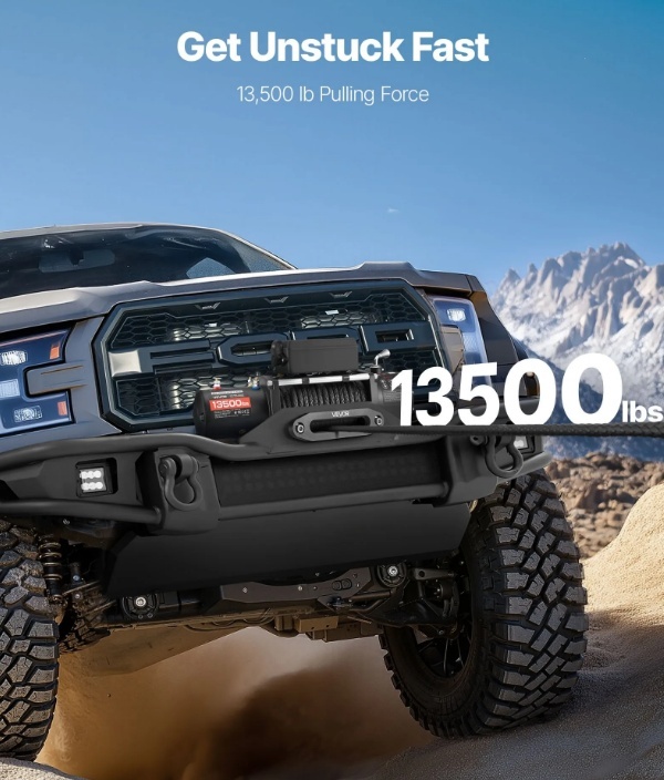 13500 mārciņu (7500 kg) spēcīga vilkšanas jauda: šī elektriskā vinča nodrošina 13 500 mārciņu (7500 kg) vilkšanas spēku, padarot apvidus auto vai pikapa evakuāciju no dubļiem vai smiltīm ātru un bez stresa, neradot bažas par pārnesumu deformāciju.