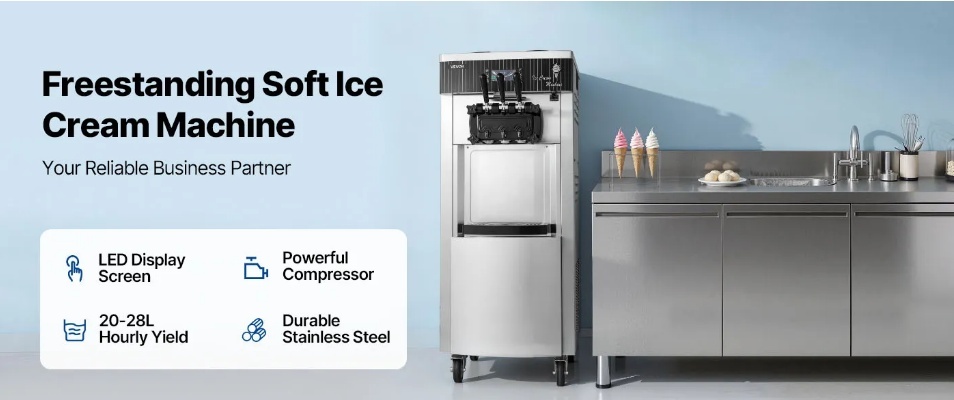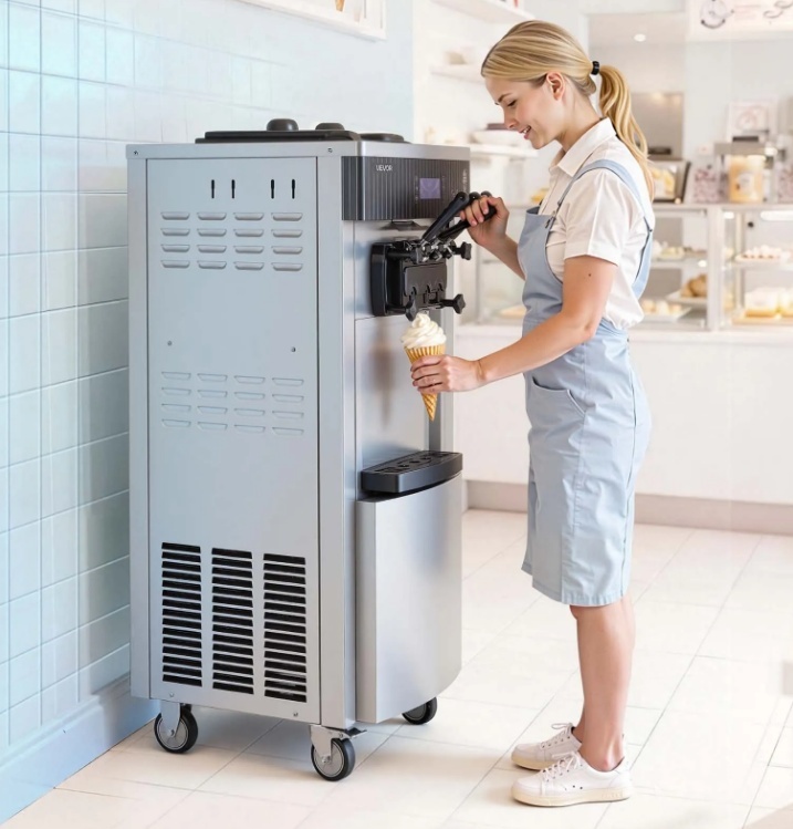 VEVOR komerciālā saldējuma mašīna, 20–28 l/h ražība , 2200W , 3 garšu