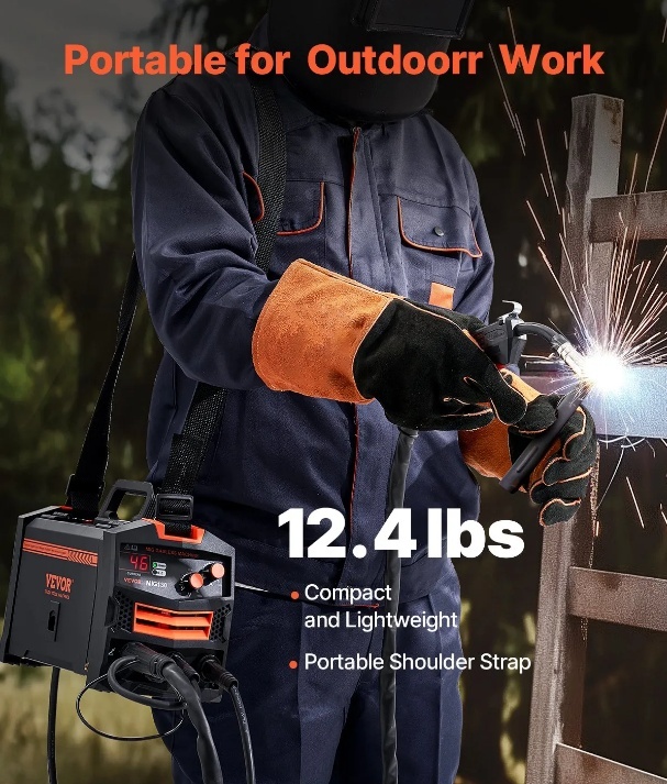 Viegli pārnēsājama: Kompakta un viegla, mūsu MIG metināšanas iekārta ir viegli pārnēsājama un ideāli piemērota darbam ārpus telpām. Aprīkota ar plecu siksnu, jūs varat bez piepūles pakārt metināšanas iekārtu uz pleca, atbrīvojot rokas ērtai mobilitātei.
