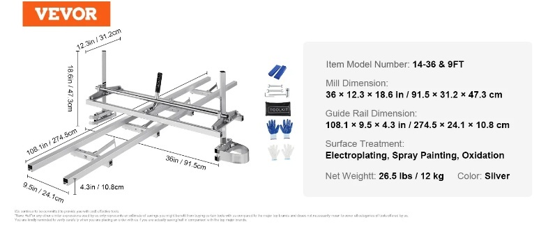 VEVOR motorzāģu kokzāģētavas uzstādīšana ir vienkārša. Montāža ir vienkārša un neaizņem ilgu laiku. To var ātri sagatavot lietošanai. Instrukcijas sniedz skaidrus norādījumus. Pat iesācēji var tos viegli ievērot. Sāciet frēzēšanu bez kavēšanās. Mēs izstrādājām šo motorzāģu kokzāģētavu, lai samazinātu uzstādīšanas laiku. Tas nozīmē, ka varat vairāk koncentrēties uz saviem kokapstrādes projektiem. Šī vienkāršā uzstādīšana padara to ērtu ikvienam lietošanai. Tūlītēja lietošana nodrošina, ka jūs nekavējoties sākat darbu pie visiem saviem projektiem.