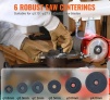 Daudzpusīgs un gatavs prasībām: Ar 6 dažāda izmēra zāģa centrēšanas punktiem mūsu zāģa asmeņu asināšanas mašīna var bez piepūles tikt galā ar ripzāģa asmeņiem no φ3,15" līdz φ27,5". Neatkarīgi no tā, vai tie ir netradicionāli zāģa asmeņi, blīvi vai vaļīgi zobi, kreisās un labās puses zobi ar skrāpi vai zāģa asmens ar skrāpi, tas ir gatavs uzdevumam.