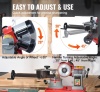 Vienkārša regulēšana precīzai asināšanai: Mūsu rotējošās leņķa dzirnavas slīpripu var bez piepūles regulēt uz augšu un uz leju par 20°. Varat arī pagriezt rokturi par 30° no kreisās puses un par 45° no labās puses, nodrošinot, ka ripzāģa asmens paliek līdzens precīzai asināšanai.