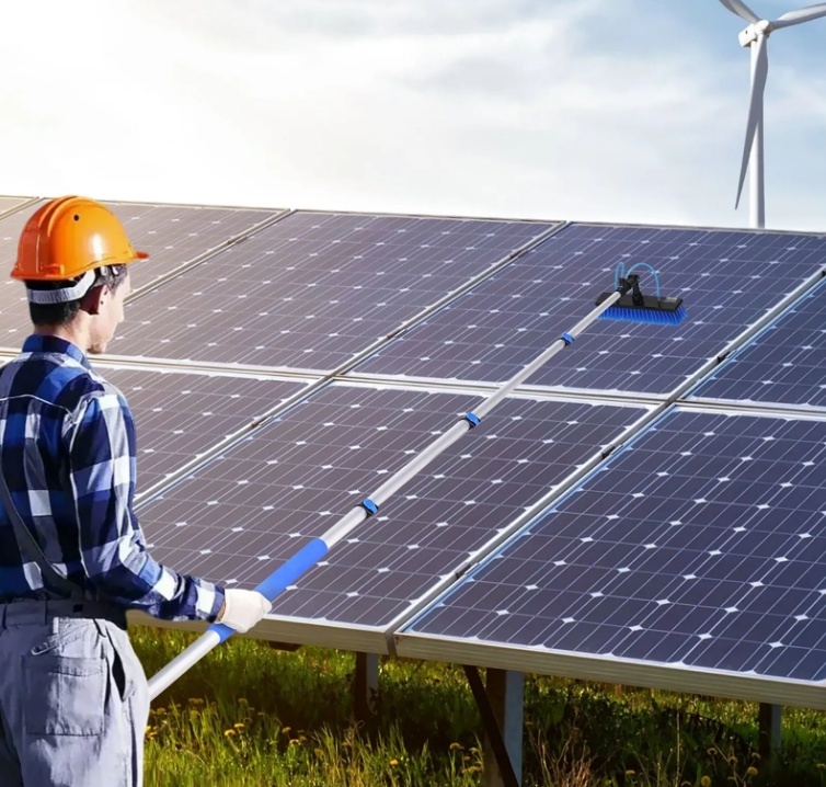 Ērta lietošana: Mūsu saules paneļu tīrīšanas birstei ir 180° rotējoša birstes galva tīrīšanai no vairākiem leņķiem. Neslīdošais sūkļa rokturis nodrošina ērtu satvērienu, nodrošinot ilgstošas tīrīšanas sesijas bez noguruma. Neatkarīgi no tā, vai tīrāt saules paneļus vai logus, šī konstrukcija padara tīrīšanu vienkāršu un efektīvu.