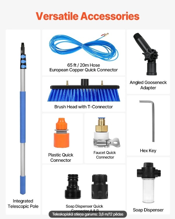 VEVOR saules paneļu tīrīšanas komplekts , 3,6m