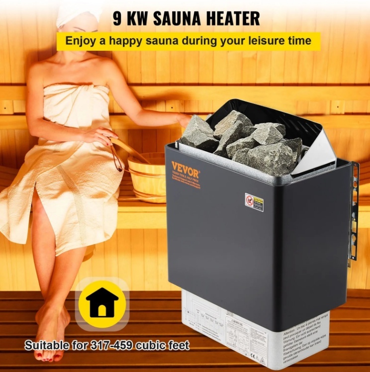 VEVOR 9KW elektriskā sausā pirts krāsns ar ārēju kontrolieri, nerūsējošā tērauda, 9-13m3 telpai