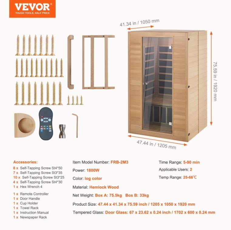 VEVOR infrasarkanā koka sauna 1800W