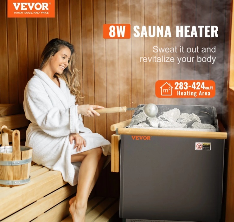 VEVOR 8 kW elektriskā pirts krāsns , 400 V , 3N pārnēsājams iekštelpu/āra pirts sildītājs ar 3 stundu taimeri