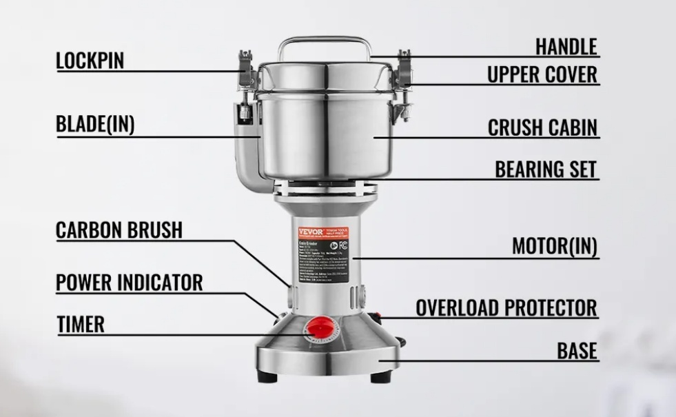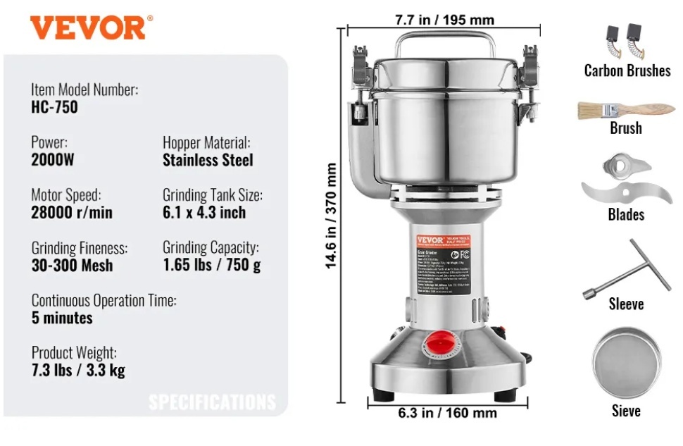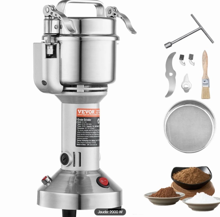 VEVOR 750g elektriskā ātrgaitas 2000W komerciālās , graudu garšvielu dzirnaviņas