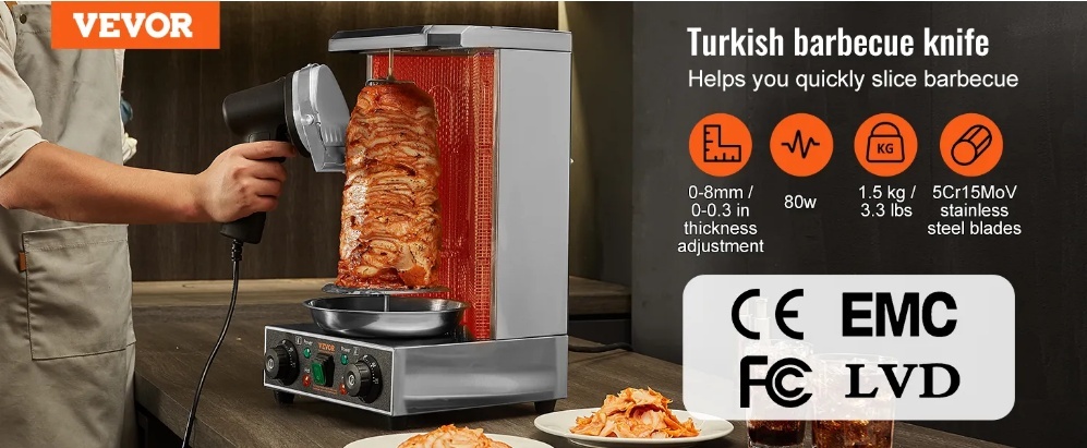 VEVOR elektriskais šavarmas nazis , 80 W profesionāls turku kebaba nazis