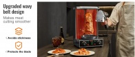Ātra griešana: Šis profesionālais turku kebabu griezējs ir aprīkots ar 80 W motoru un asiem asmeņiem, lai jūs varētu ātri sagriezt bārbekjū. Tas ievērojami uzlabo jūsu darba efektivitāti.