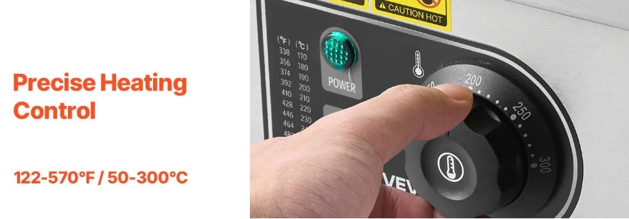Precīza sildīšanas kontrole: Regulējama temperatūra no 50°C līdz 300°C, šī nerūsējošā tērauda elektriskā panna ļauj jums apgūt ideālo temperatūru pankūkām, steikiem, vistas gaļai un citiem ēdieniem.