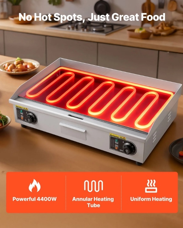 VEVOR komerciālā elektriskā panna, 725 x 400 mm, 4400 W , 50–300 °C , regulējama temperatūra