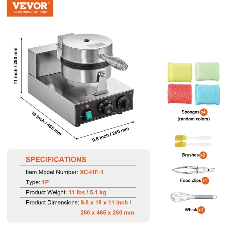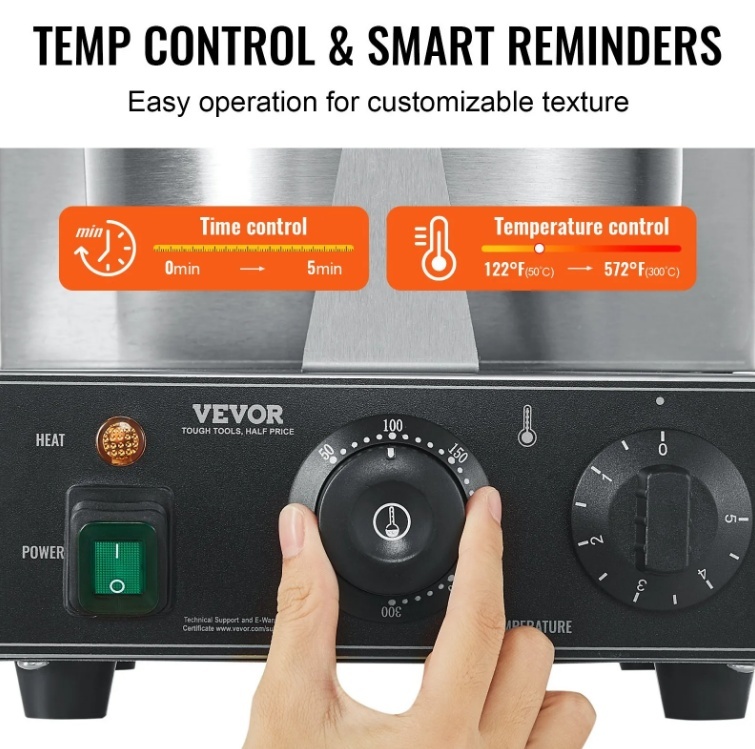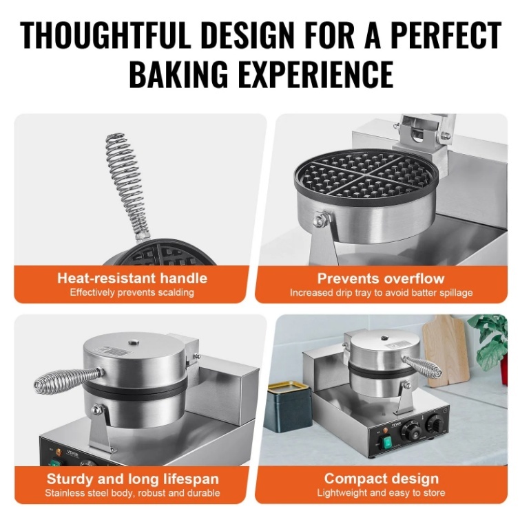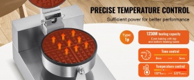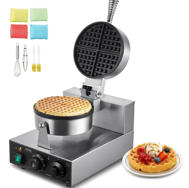VEVOR komerciālā vafeļu panna, 1230 W apaļo vafeļu cepšanas mašīna , nepiedegošs nerūsējošs tērauds
