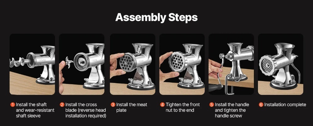 Vienkārša uzstādīšana un tīrīšana: Manuālo desu cepšanas mašīnu var viegli izjaukt, kas ļauj ātri un rūpīgi iztīrīt katru sastāvdaļu ar mūsu komplektācijā iekļauto tīrīšanas birsti. Vienkārši izpildiet secīgo montāžas instrukciju, un ierīce būs gatava lietošanai. Ergonomiskais rokturis samazina roku nogurumu un palielina malšanas produktivitāti.