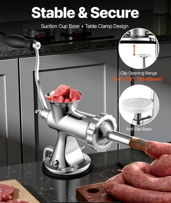 VEVOR 304 nerūsējošā tērauda rokas gaļas maļamā mašīna ar piesūcekni + tērauda galda skavu